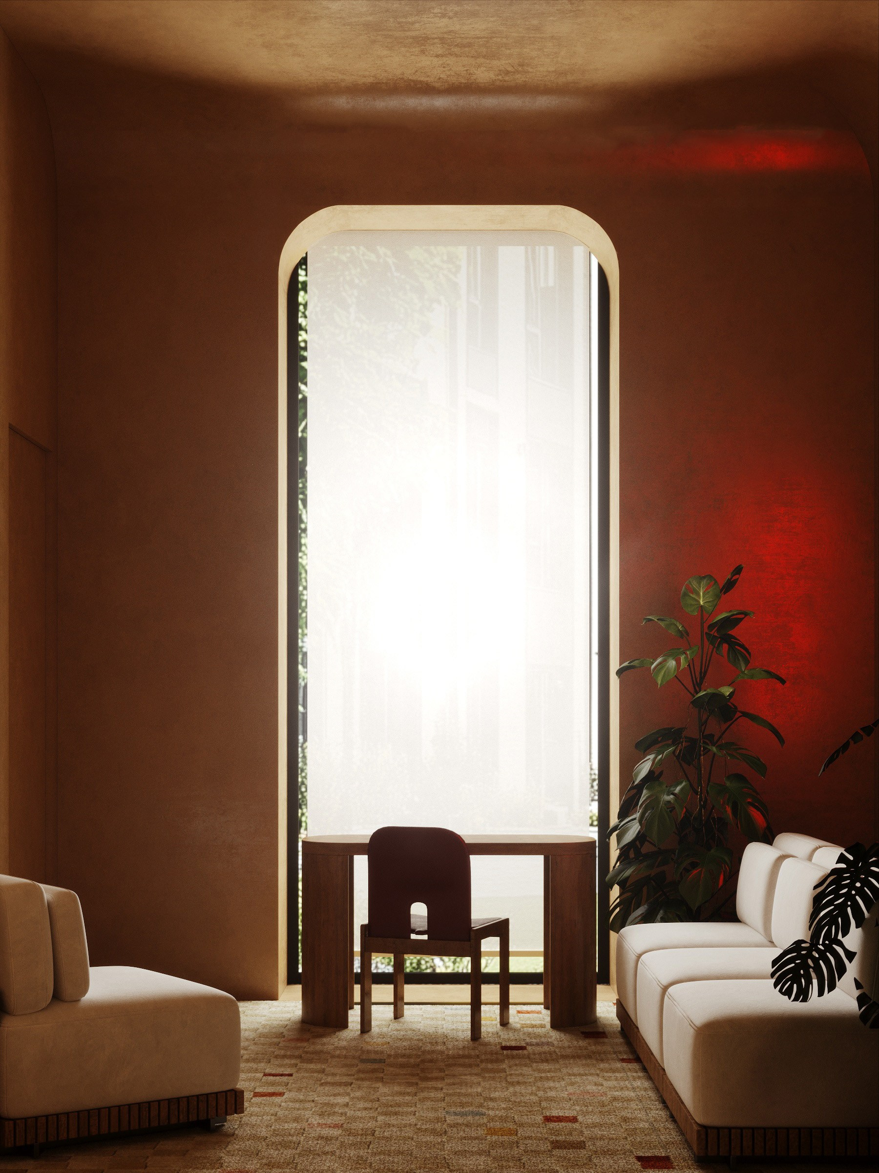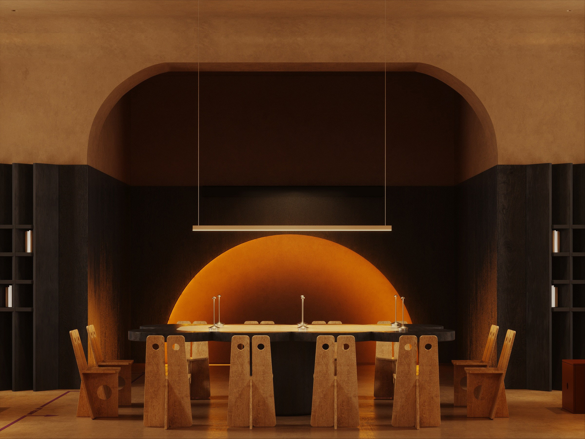 Холл Факультета архитектуры и дизайна. Студенческий проект, 2024 г